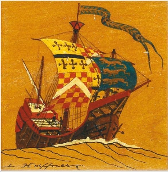 Petite huile originale sur panneau représentant une nef XVe siècle
