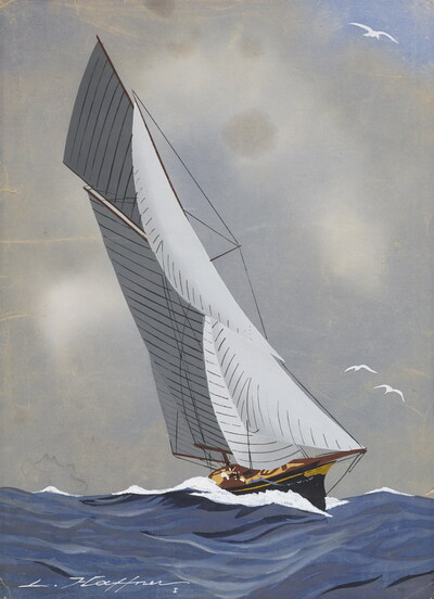 Léon HAFFNER (1881-1972) - Voilier - Gouache signée en bas à gauche - 44 x 32 cm - Pliures et petites déchirures