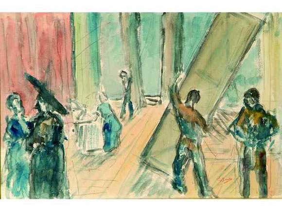 La mise en place du décor pour la pièce du Barbier de Séville (Rouen)