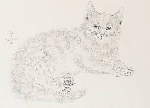 Recumbent cat printed signature and date 'Foujita/1929' (upper left)