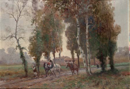 Paesaggio con cavalli e contadini