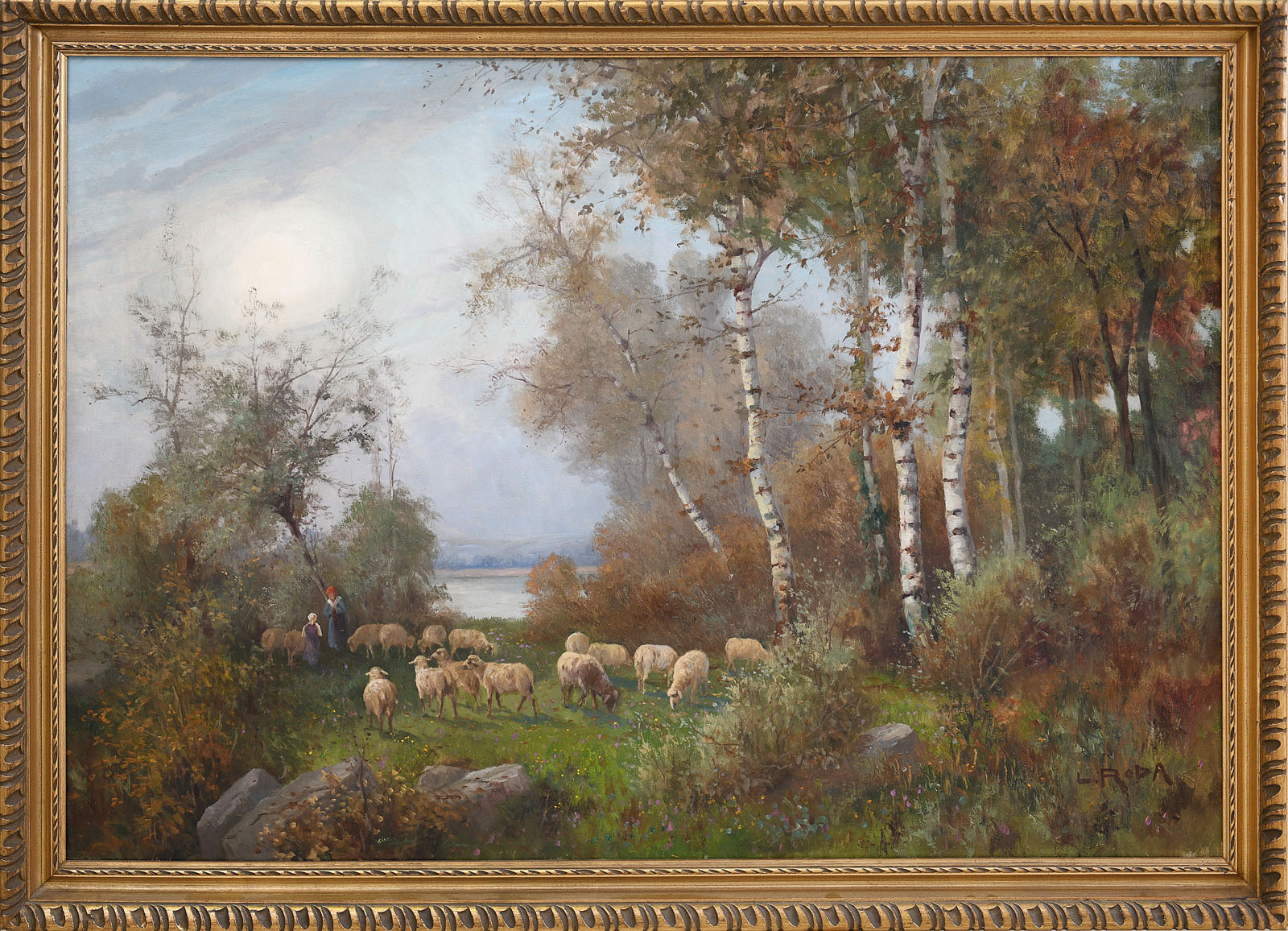 Paesaggio fluviale con pastorella e gregge