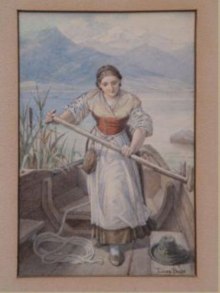 Ruderndes junges Mädchen auf Alpensee
