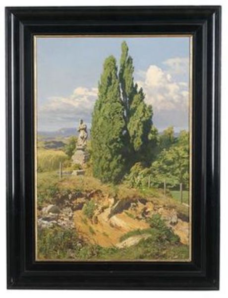 Sommerlandschaft mit Pappeln und einem Bildstock