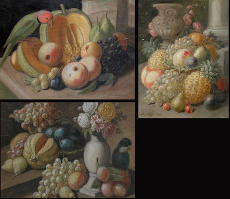 A Suite of Three Still Life Paintings i. Parrot with Fruit