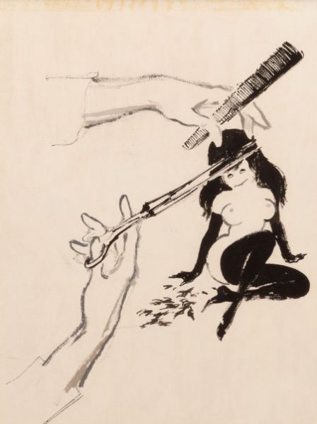 Femlin Combing Afro, A Hair-Cut, set of two Playboy Party Jokes illustrations