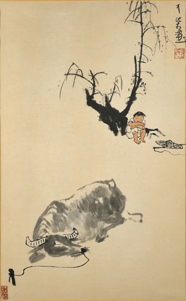 SLEEPING SHEPHERD BOY AND A BUFFALO