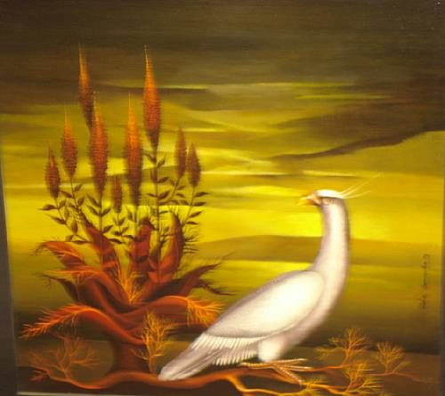 | Mystical shoreline with shells, together with a bird in a landscape | |