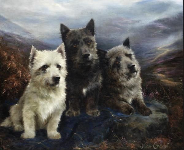 | 'Wee three' - A West Highland White Terrier, a Scottish Terrier and a Cairn Terrier | |