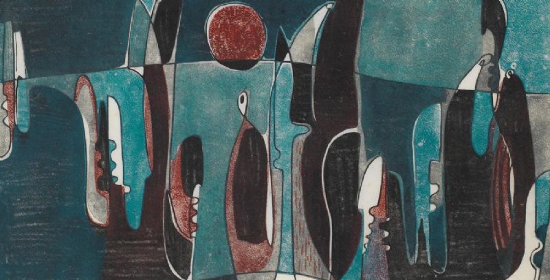 | Linocut printed in colours, on tissue thin Japan paper | |