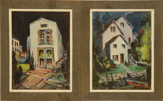 | Two works, one depicting the Provincetown Playhouse, and the other a waterfront cottage and dory | |