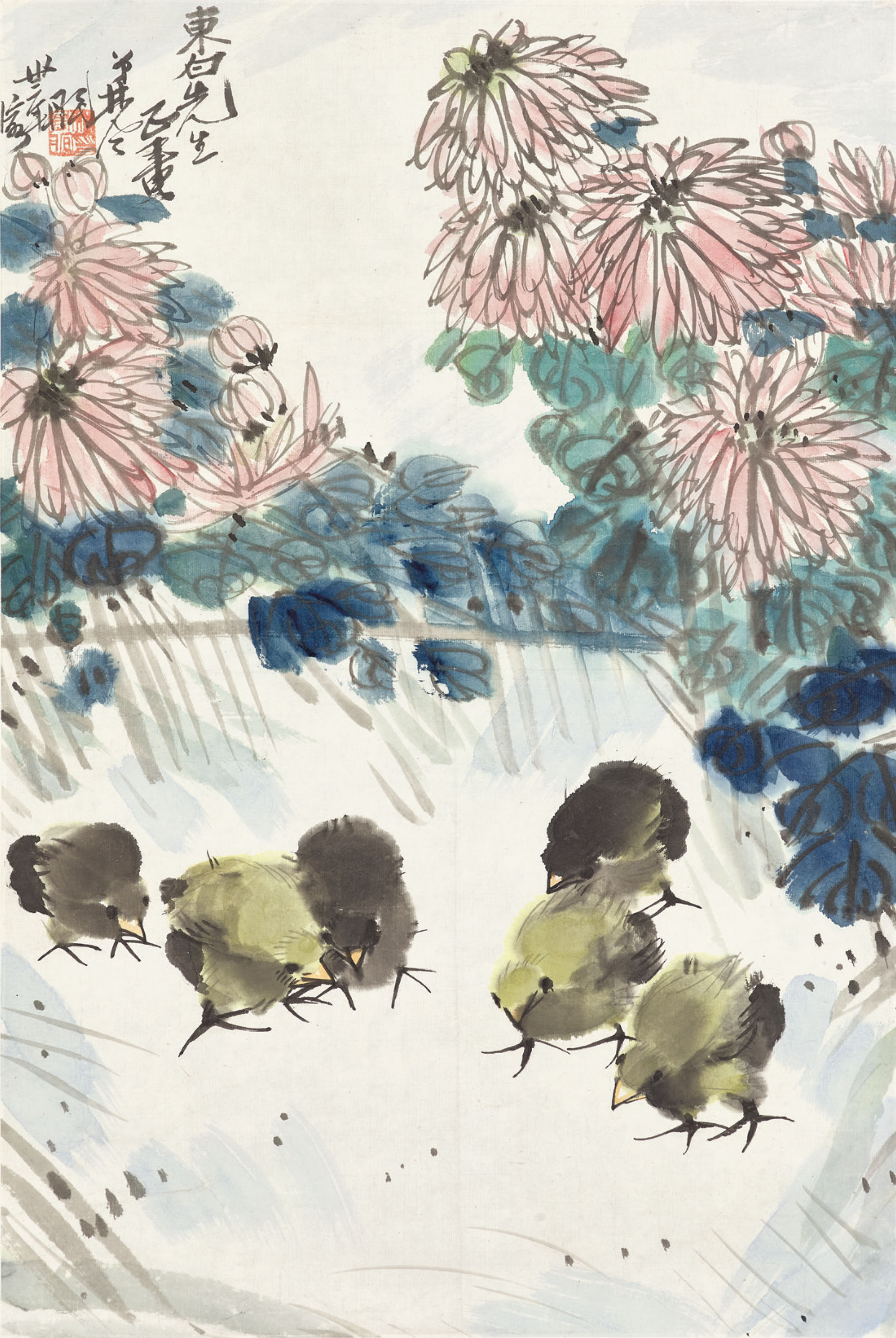 | Chicks under Chrysanthemum | |