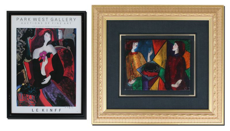 TWO PIECE ART LOT TO INCLUDE: 1) Two Females and Resting Cat in an Interior