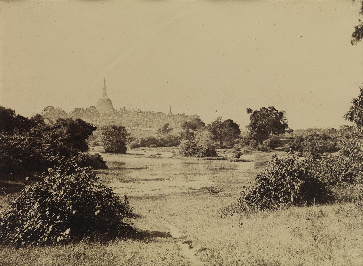 | Rangoon. View near the lake. Shwe Dagon in the distance (Burma). | |