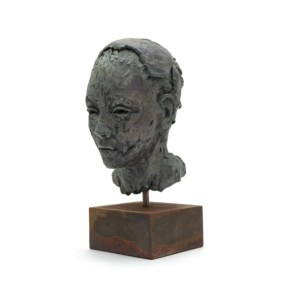 | Bronze with green patina on a metal base | |