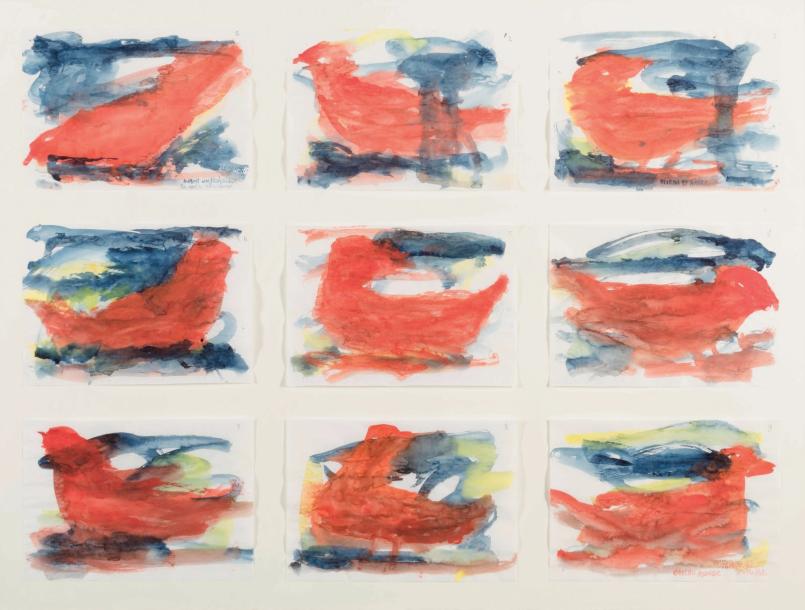 | Avant une promenade. Soir pluvieux. Oiseau rouge. | |