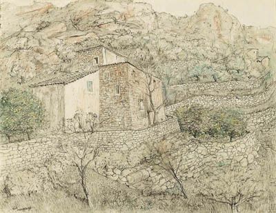Watercolor pen and ink on paper