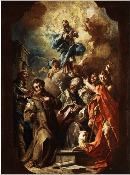 MARIA IMMACULATA IN WOLKEN ÜBER EINER GRUPPE VON HEILIGEN