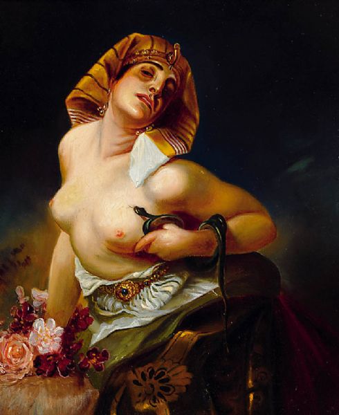 | Halbakt der Cleopatra mit Schlange, dramatische Darstellung, lasierende Hell-Dunkelmalerei, li | |