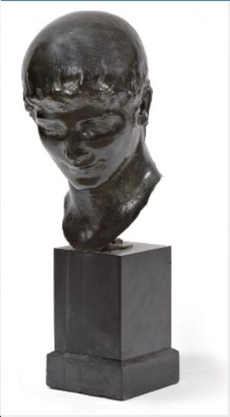 Sculpture in bronze with black patina, on a black marble base