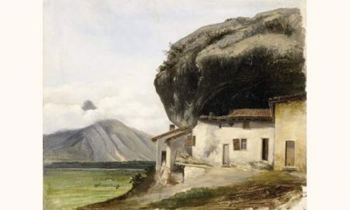 | Chaumière sous un rocher, en face d'un volcan d'Auvergne | |