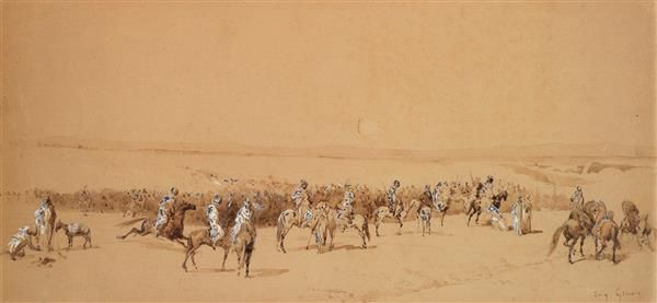 L’ARRIVÉE DES CAVALIERS HORSEMEN ARRIVING AT CAMP