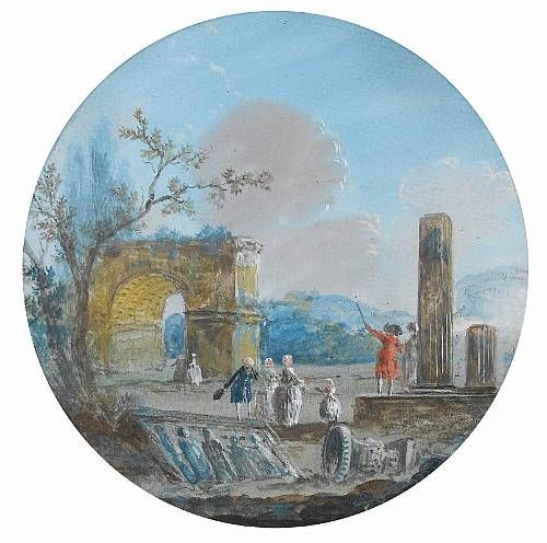 Elegant figures inspecting ruins