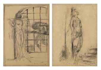 | FEMALE FIGURE BY A GATE (VARIATION ON DALILA); AND A FEMALE FIGURE ON STAIRS, 1920s | |