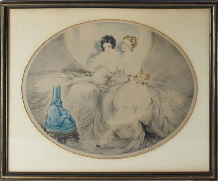 VIEILLE FAIENCE- TROIS JEUNES ET UNE STATUETTE DE BOUDDHA BLEU
