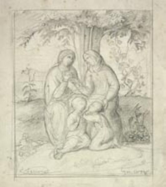 | Les saintes soeurs, Baptiste et l’Enfant Jésus conversant sous un arbre | |