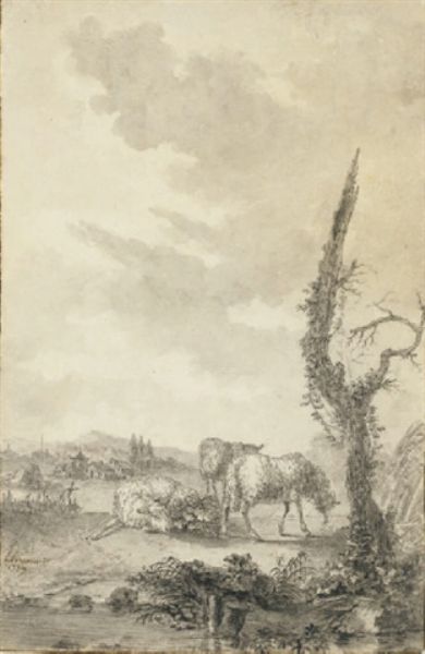 | Pen and ink brown and black, black chalk, lavis gray, brown paper on clear, traits of mentoring to the brown pen and ink | |
