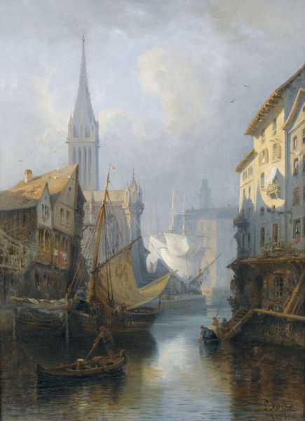 Stimmungsvoller Kanal mit Segelbooten.