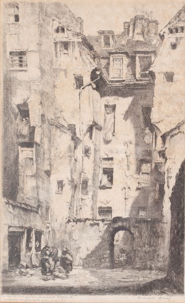 Depicting a Continental courtyard scene