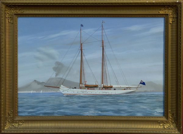 | studies of the British Yacht 'Halcyon' at sea by night and day, the Bay of Naples beyond in the daylight study | |