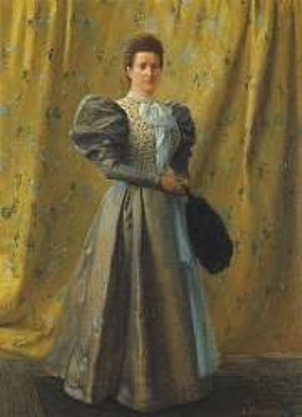 A portrait of a lady, full length, holding a fan