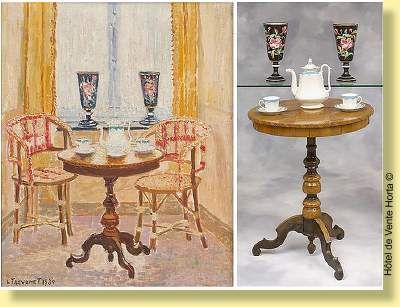 Intérieur au guéridon et porcelaines.