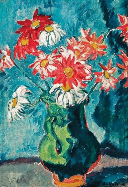 Cruche verte aux marguerites