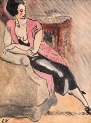 | Femme assise au gilet rose | |