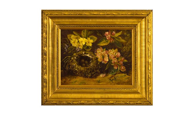 Stillife, Nest With Birds Eggs In a Flower Bed