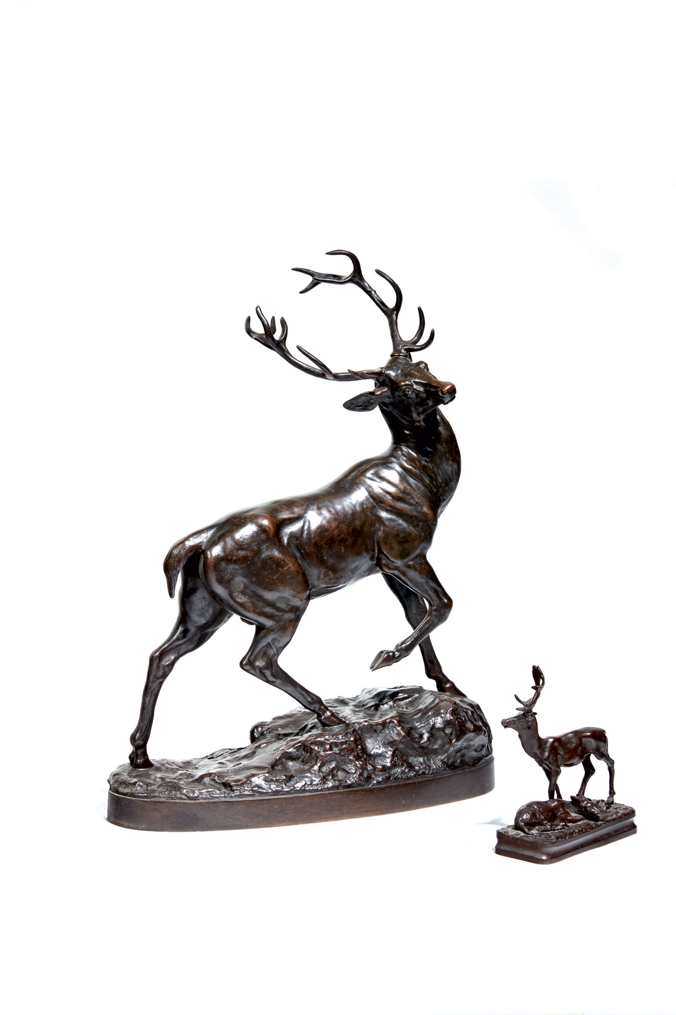 Grand cerf en bronze à patine médaille
