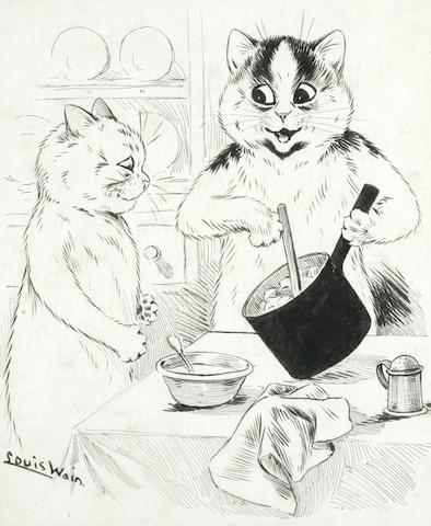 | "How do you make that cake?" "Good temper, - elbow grease and no sauce" - sketch for 'Louis Wain' annual | |