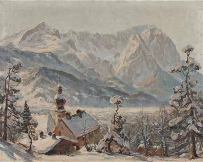 Rückseite betitelt "Wettersteingebirge mit Zugspitze"