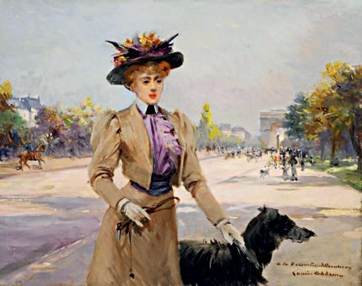 Madame La Vicomtesse de Beaurieux et son chien, avenue Foch