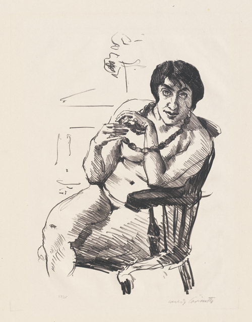 | Weiblicher Akt mit Halskette im Lehnsessel | |
