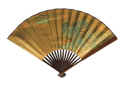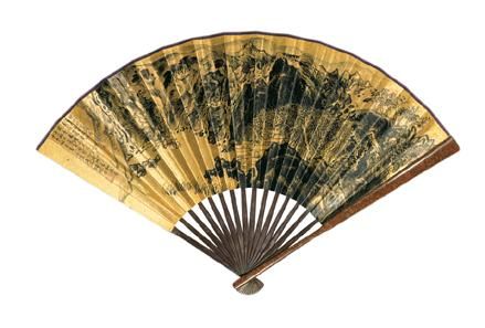 | Ink folding fan and colour on gold paper; ink on gold paper | |