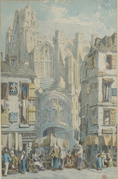 Market Scene with Cathedral