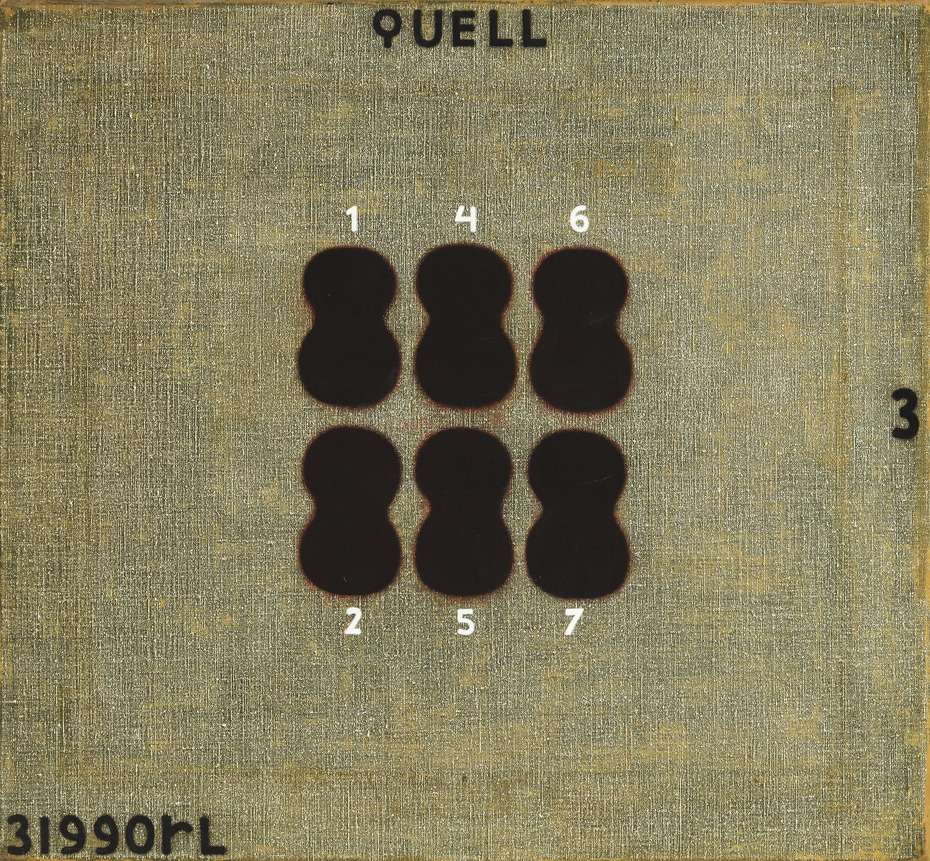 QUELL (Theoretisch Model) (1990-1995) Signed with initials and dated 31990 lower left Titled upper centre Signed and dated 90-95 on the reverse Oil and marble powder on canvas, 59.9 x 65 cm Provenance: - Collection Otto Schaap, Amst | |
