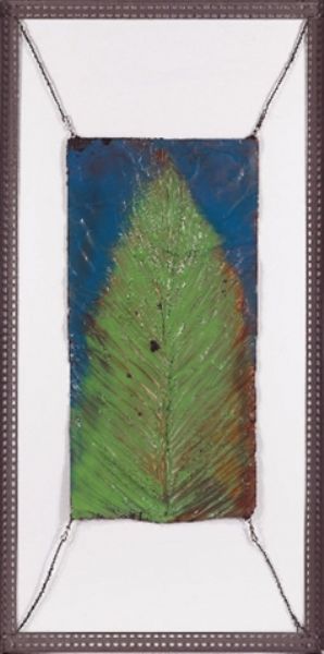 | Acrylic and enamel on copper and tar with cables in artist's metal frame | |