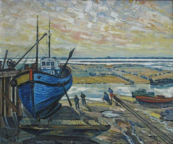 Chalutier et parc à huîtres, bassin d'Arcachon
