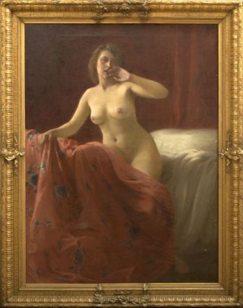 Female Nude Rising from Her Bed in the Morning